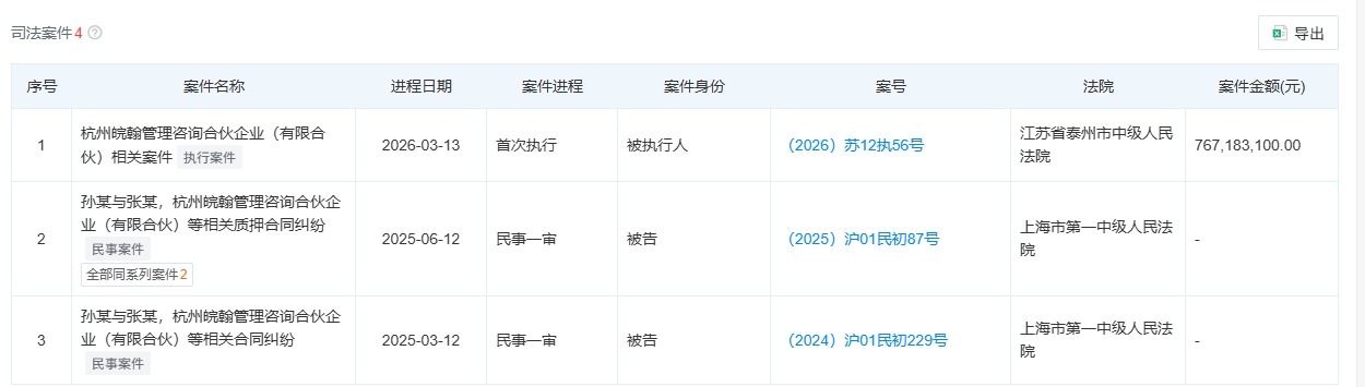 除了股东减持外,投资者还目光聚集在一则司法信息上。天眼查APP显示,华达科技的第四大股东——杭州皖翰管理咨询合伙企业(有限合伙),在2026年3月13日被江苏省泰州市中级人民法院列为被执行人,执行标的额巨大,高达7.665亿元。从2025年三季报来看,杭州皖翰持有公司约4.67%的股份。